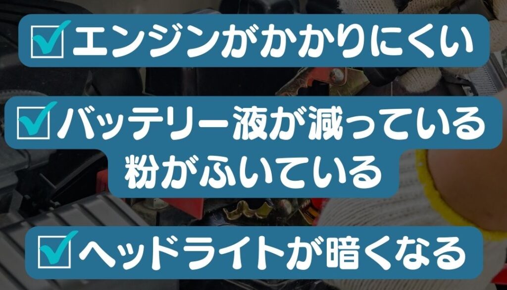 バッテリーの経年劣化が進むとエンジンのかかりが悪くなるなどの不調をもたらします。