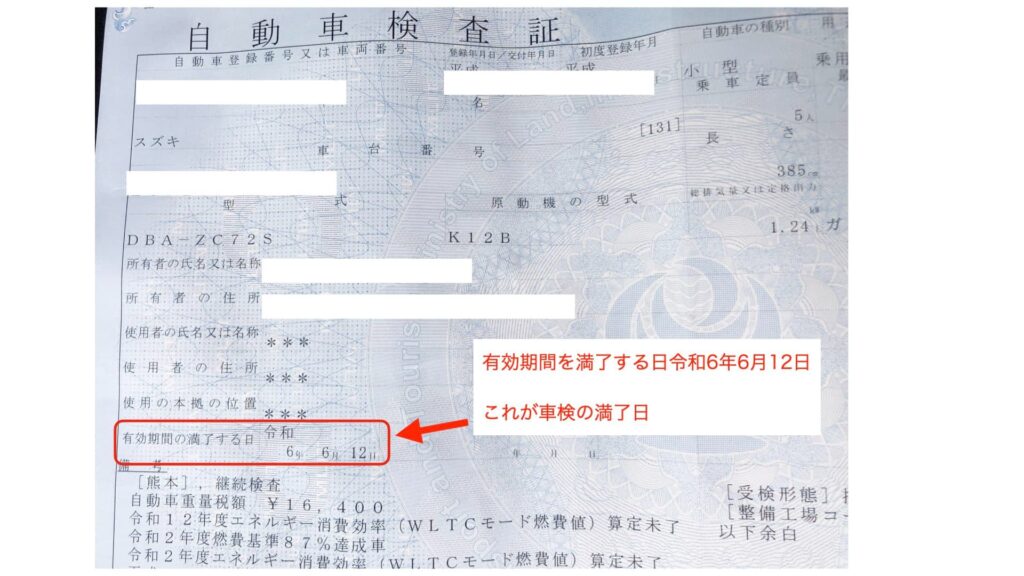 ここに記載されている日時が車検の有効期間の満了日です。